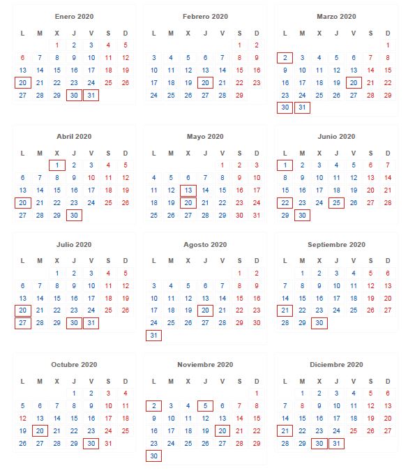 Calendario general del contribuyente 2020.
